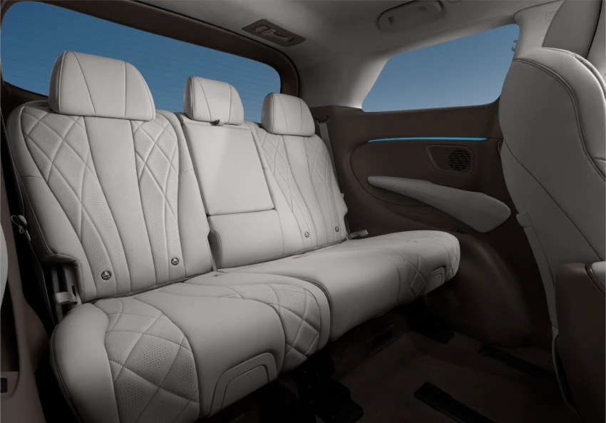 The width of the third-row corridor platfrom reaches 170mm, offering generous legroom up to 1040mm. MPV rear seat standards. ISOFIX mounting is available, with the capacity to install up to four child safety seats in the middle and rear rows.